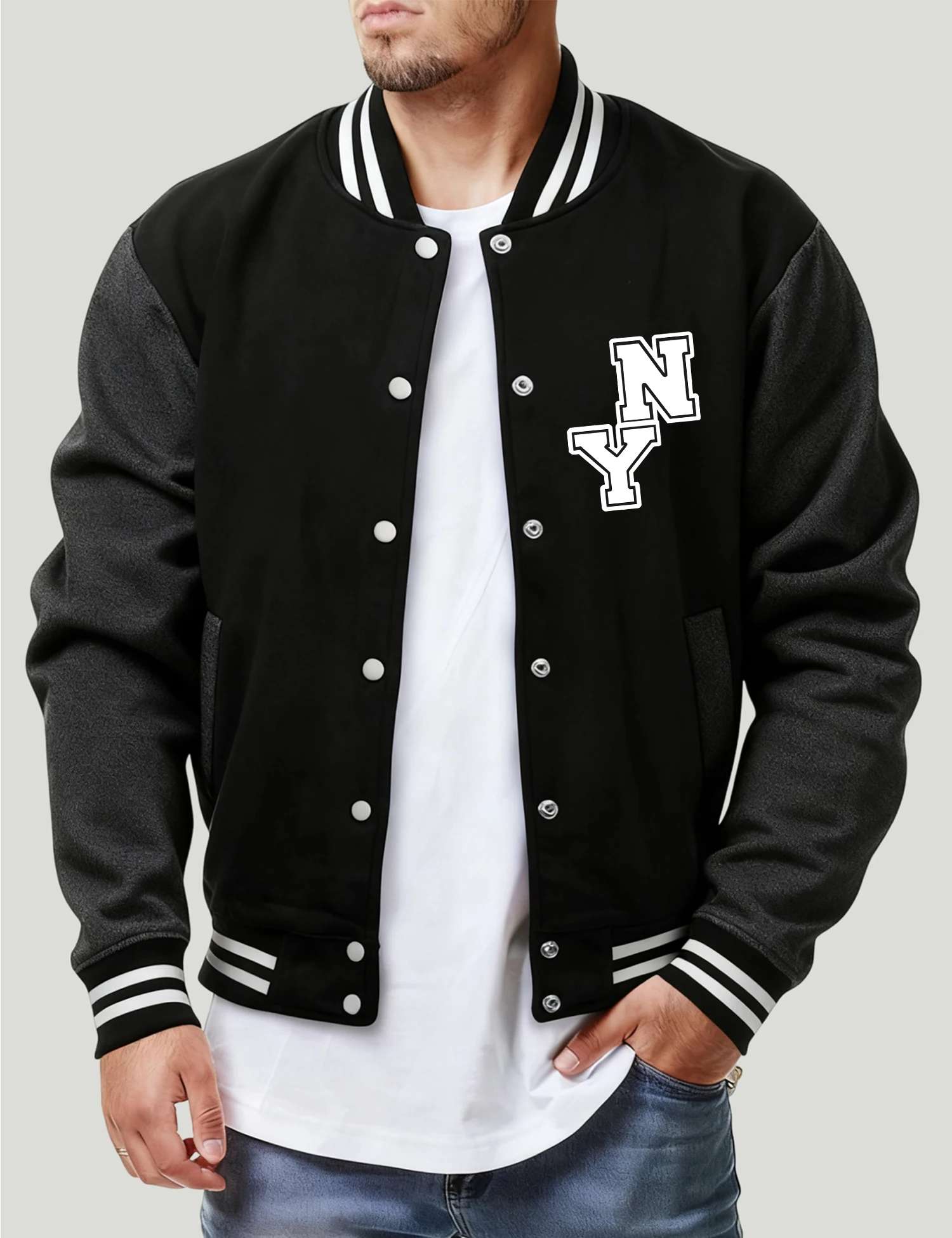New York City Art Word Printed Men Baseball Jacket Fashion Hip Hop Streetwear Fleece Loose Jersey Unisex All-Match Autumn Coat